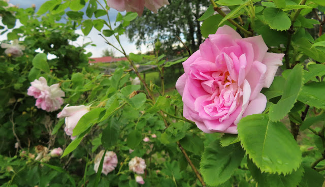 Maanantaina viikko käynnistyi taas omalla kotipihalla. Meidän tehotytöt eli Papu ja Lotta tässä oksimassa ruusupensaita: Lotta yltää ylemmille oksille ja Papu harventaa lähempänä maanpintaa.